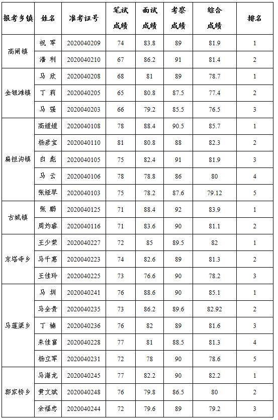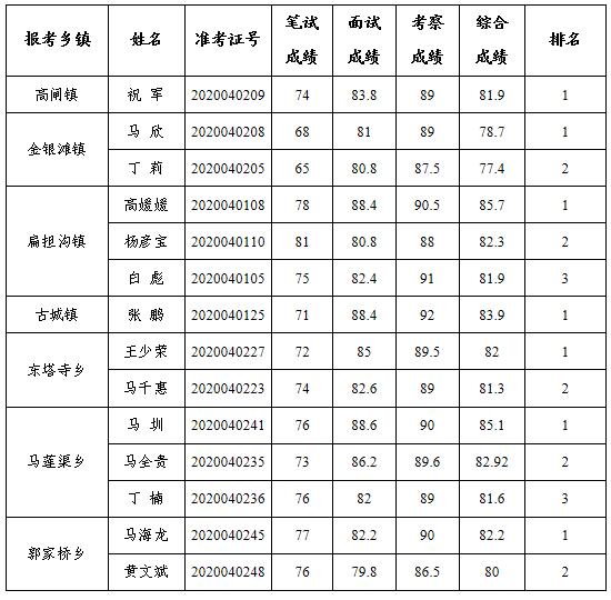 根據(jù)《利通區(qū)公開選任村黨組織書記實施方案》(吳利黨辦綜〔2020〕25號)有關規(guī)定,按照筆試成績×30%+面試成績×50%+考察成績×20%核算綜合成績,并按照每個招考職位人數(shù)的1:1比例確定體檢人員?,F(xiàn)將利通區(qū)公開選任村黨組織書記綜合成績及體檢人員名單公示如下: 利通區(qū)公開選任村黨組織書記綜合成績排名 利通區(qū)公開選任村黨組織書記體檢人員名單